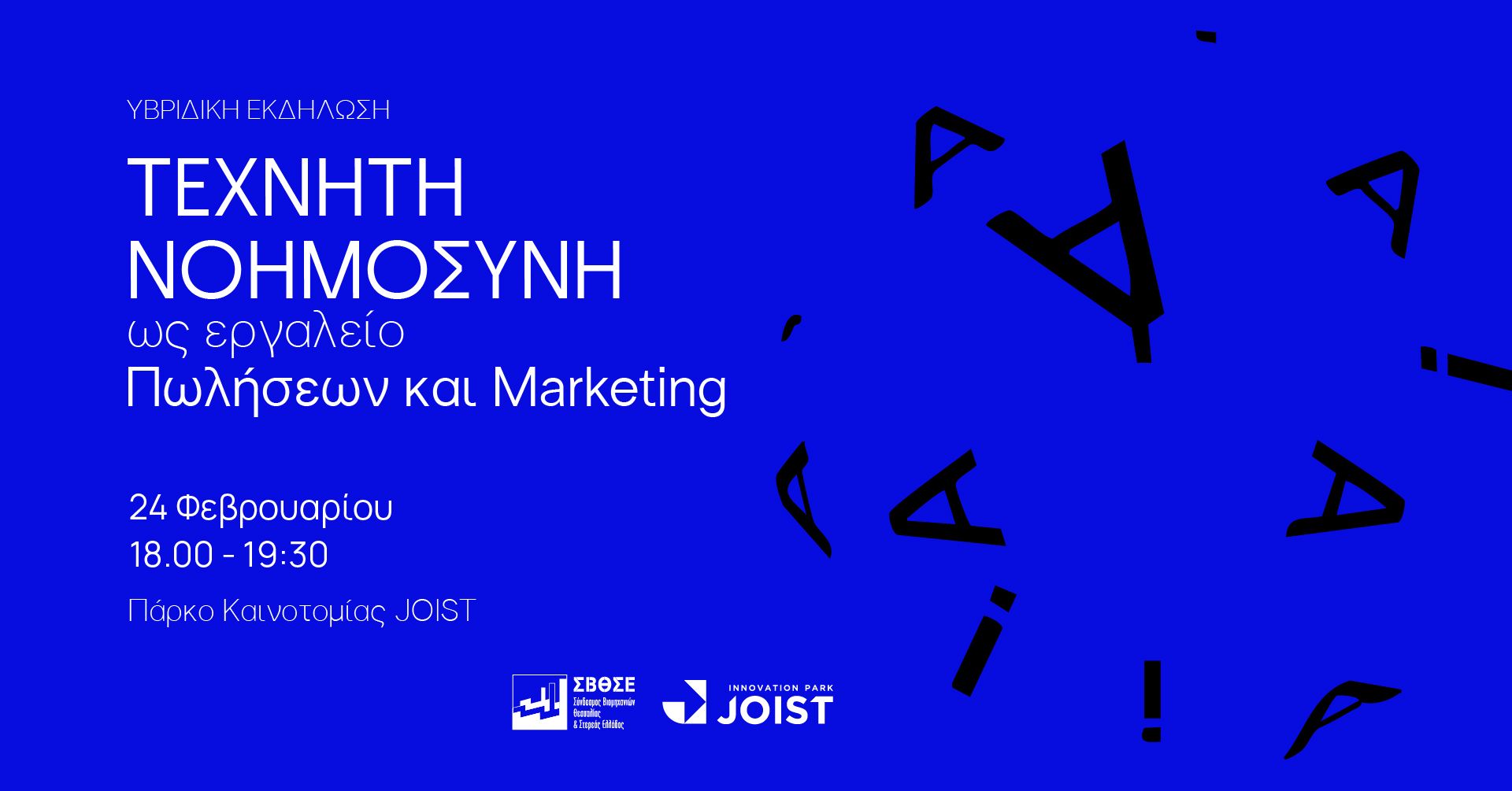 Ο ΣΒΘΣΕ – Σύνδεσμος Βιομηχανιών Θεσσαλίας και Στερεάς Ελλάδος σε συνεργασία με το Πάρκο Καινοτομίας JOIST διοργανώνουν μια υβριδική εκδήλωση (δια ζώσης και online) με θέμα την αξιοποίηση της Τεχνητής Νοημοσύνης (AI) στον χώρο των πωλήσεων και του marketing.