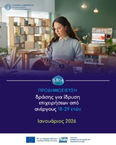 Εντός του Ιανουαρίου 2026 προκηρύσσεται το νέο «Ολοκληρωμένο πρόγραμμα ενίσχυσης της νέας επιχειρηματικότητας για ανέργους ηλικίας 18–29 ετών, με έμφαση στις γυναίκες και στην ψηφιακή & πράσινη οικονομία», συνολικού προϋπολογισμού 37 εκατ. ευρώ.