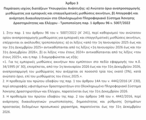Οι διατάξεις αυτές περιλαμβάνονται στο άρθρο 3 της τροπολογίας, το οποίο τροποποιεί τις εν ισχύ προθεσμίες του θεσμικού πλαισίου για τις οικονομικές δραστηριότητες που διεκπεραιώνονται μέσω του OpenBusiness.